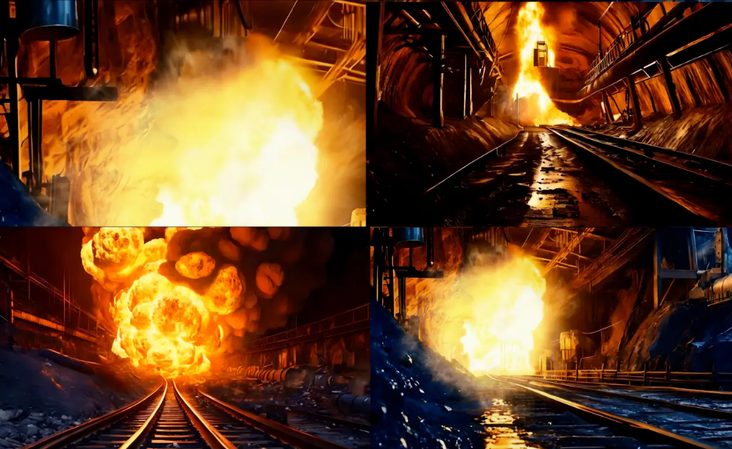 煤矿瓦斯燃烧是高浓度的瓦斯从煤层或岩体中涌出,在火源存在的条件下发生的扩散燃烧现象。煤矿瓦斯燃烧可能发生在工作面煤壁,瓦斯抽采管路以及一些专用巷道。瓦斯燃烧产生大量的高温、有毒、有害气体,造成一般事故和较大事故,一般不会直接造成特别重大的伤亡事故。