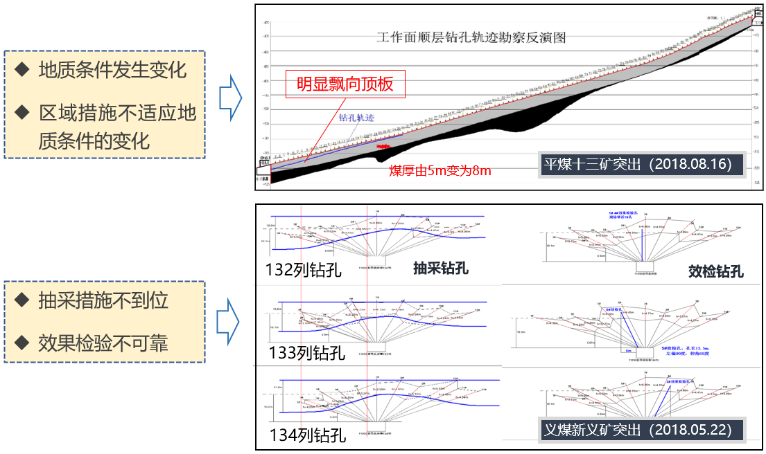 煤与瓦斯突出防治措施不到位、突出防治措施不能适应地质条件的变化和区域措施效果检验不能真实反映煤层的突出危险,以至于产生了区域达标的假象,如图2所示。