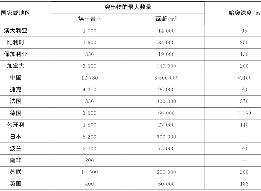 煤与瓦斯突出是一个世界性的煤矿开采时发生的动力现象,几乎所有的产煤国家都发生过煤与瓦斯突出。目前,世界上共发生30000多次煤与瓦斯突出。世界主要的采煤国家发生的煤与瓦斯突出情况如表1所示。