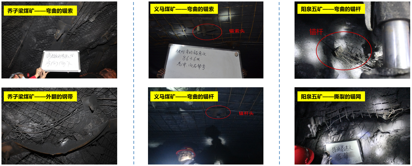在实施区域瓦斯治理措施后,虽然未达到消除煤层突出危险性目标,但也在一定程度上降低了应力及煤层瓦斯压力与含量,使得煤与瓦斯突出动力破坏作用不显著。突出物以煤为主,除将突出煤体抛出外,突出的动力作用较小,巷道支护及设施较为完好,仅在突出孔洞附近有锚杆和锚索头部发生弯曲、锚网撕裂等现象。