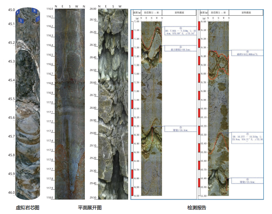 传统岩心编录高度依赖技术人员的经验,具有极强的主观性,不同编录人员对同一岩心的地层划分、结构面统计、不良地质识别往往存在显著差异,且编录成果以纸质文档为主,难以复用、回溯与复核,同时岩心长期保存面临风化、丢失、损毁的难题。钻孔成像技术输出全孔段连续的数字化影像与结构化数据,可实现地质编录的标准化、自动化,大幅降低人为经验带来的误差;数字化成果可永久无损存档,随时回溯、复核、二次解译,彻底解决了岩心长期保存的行业痛点。